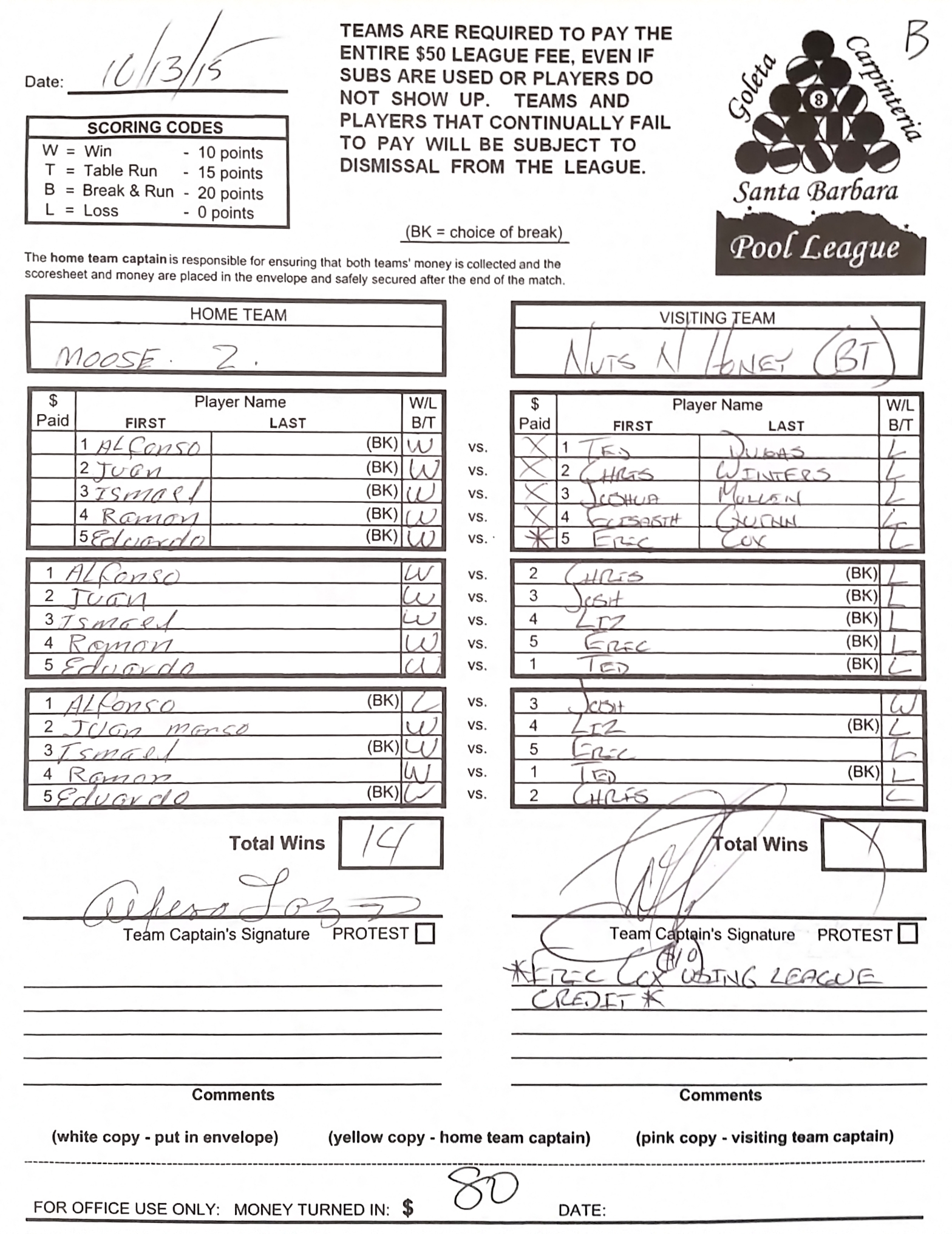 W | Ismael Huerta | vs | Liz Quinn | L |
