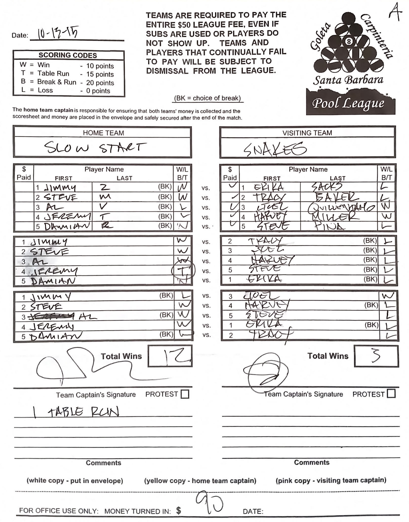 W | Jim Zambelli | vs | Erika Sacks | L |