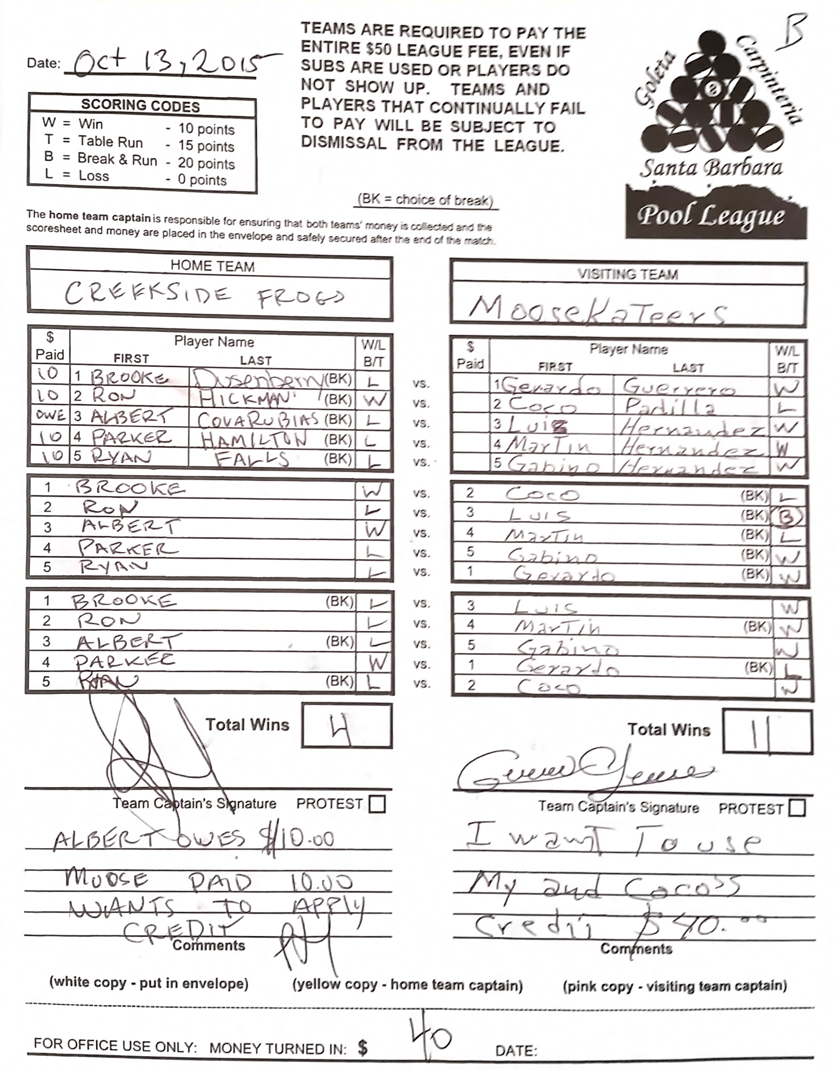 L | Brooke Dusenberry | vs | Luis Hernandez | W |