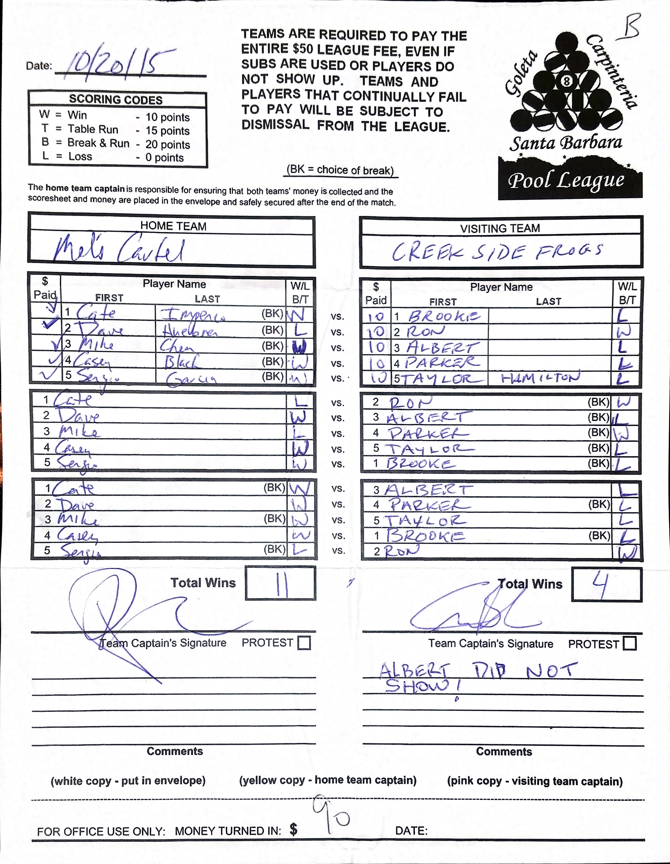 W | Dave Huebner | vs | Parker Hamilton | L |