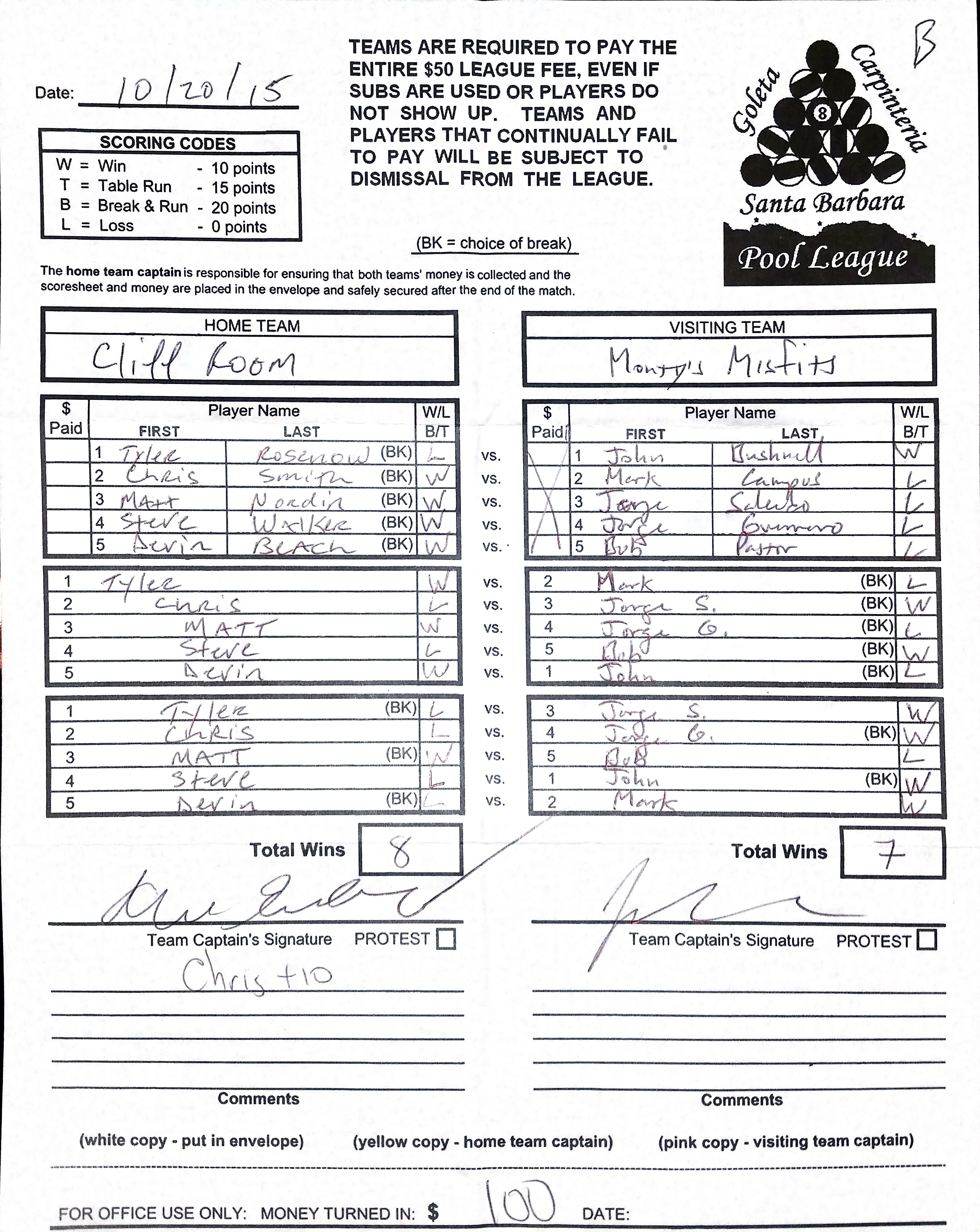 L | Tyler Rosenow | vs | John Bushnell | W |