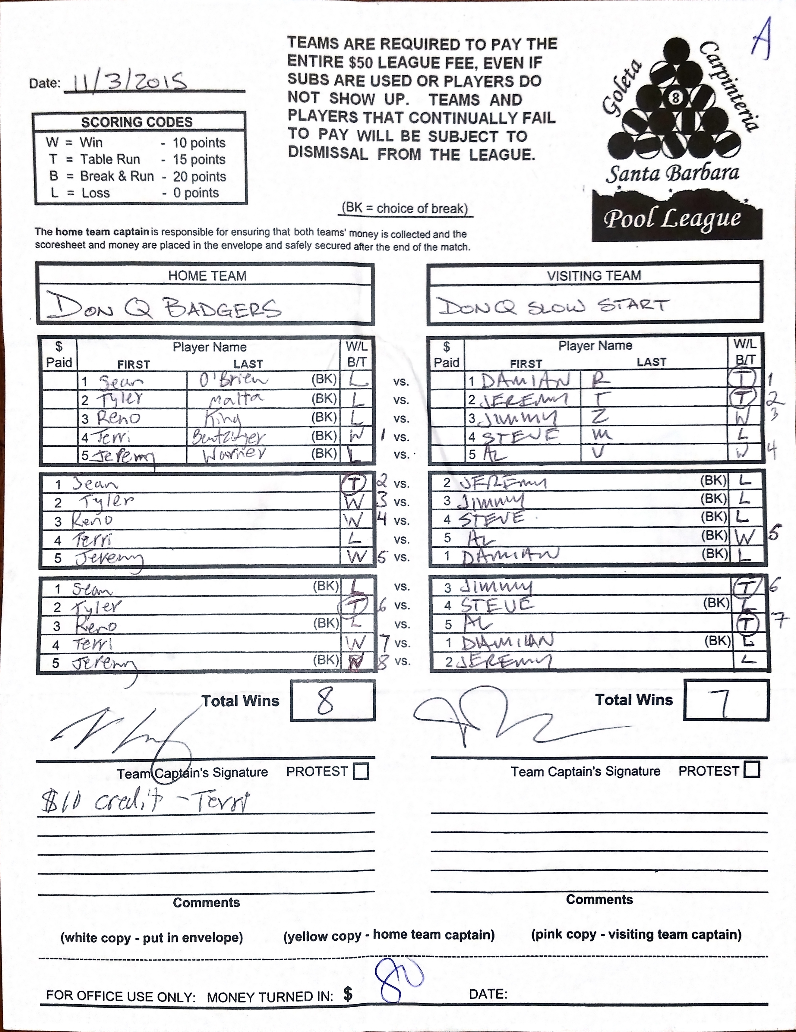 W | Terri Bentzinger | vs | Steve Moreno | L |