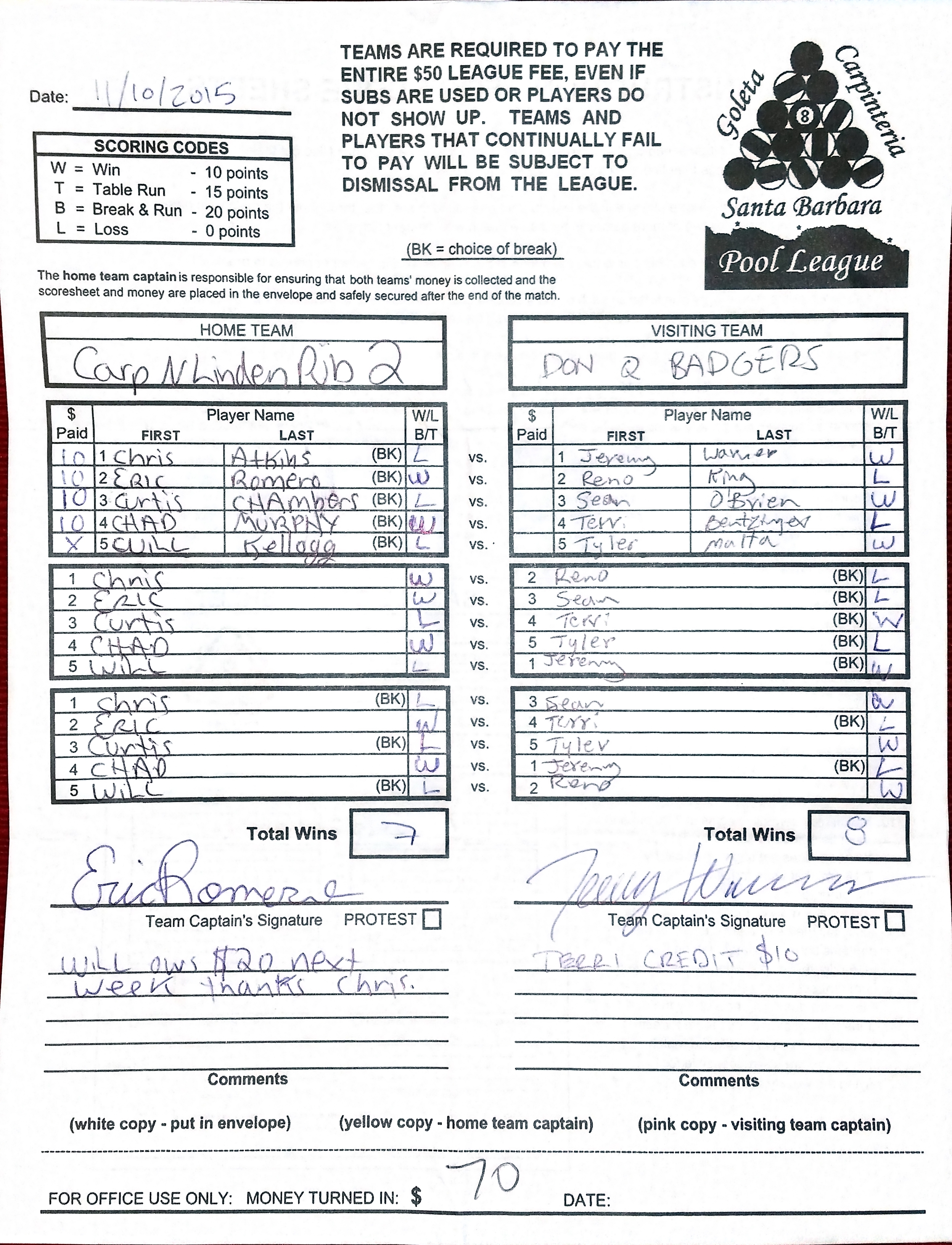 L | Curtis Chambers | vs | Terri Bentzinger | W |