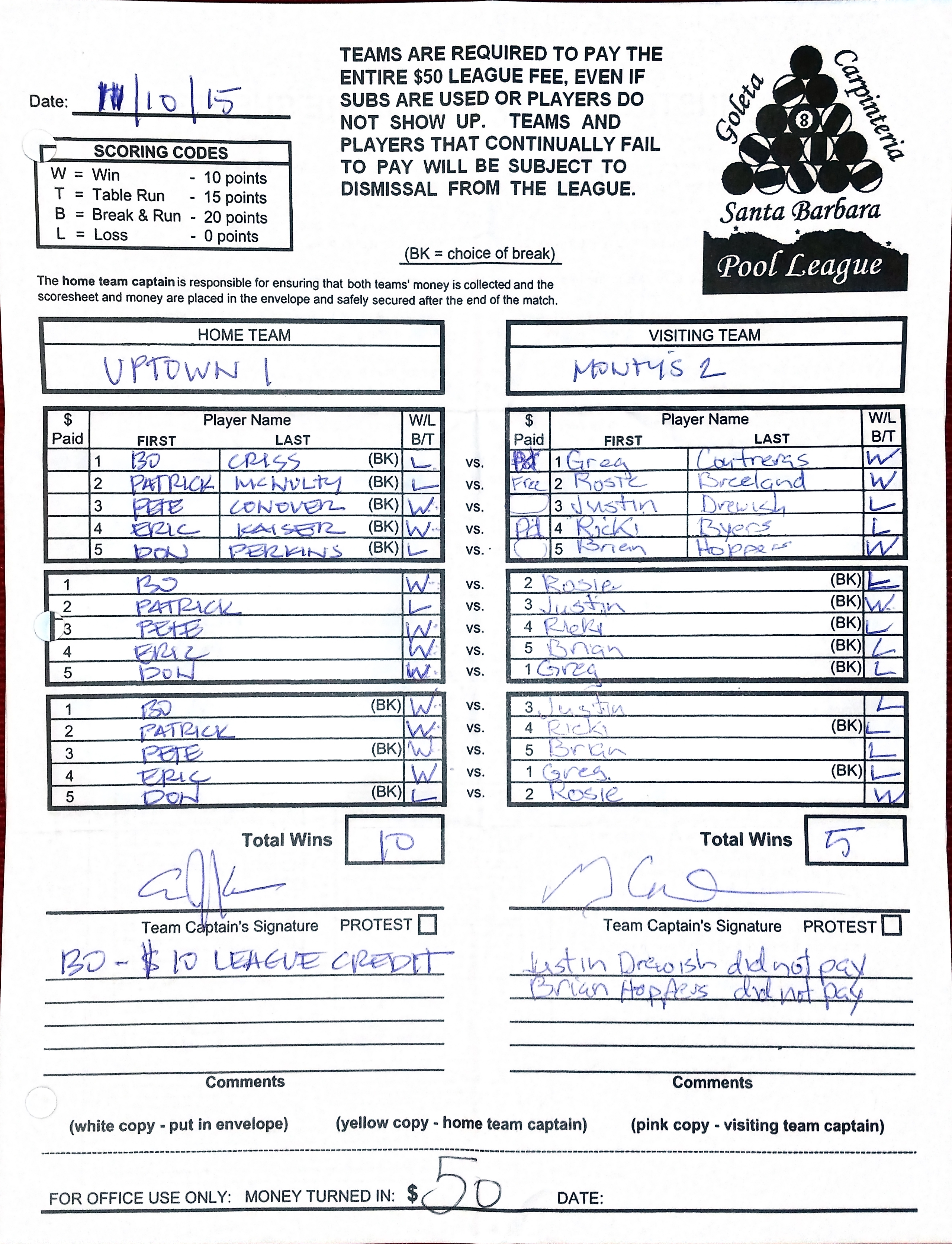 L | Patrick McNulty | vs | Rosalie Breeland | W |