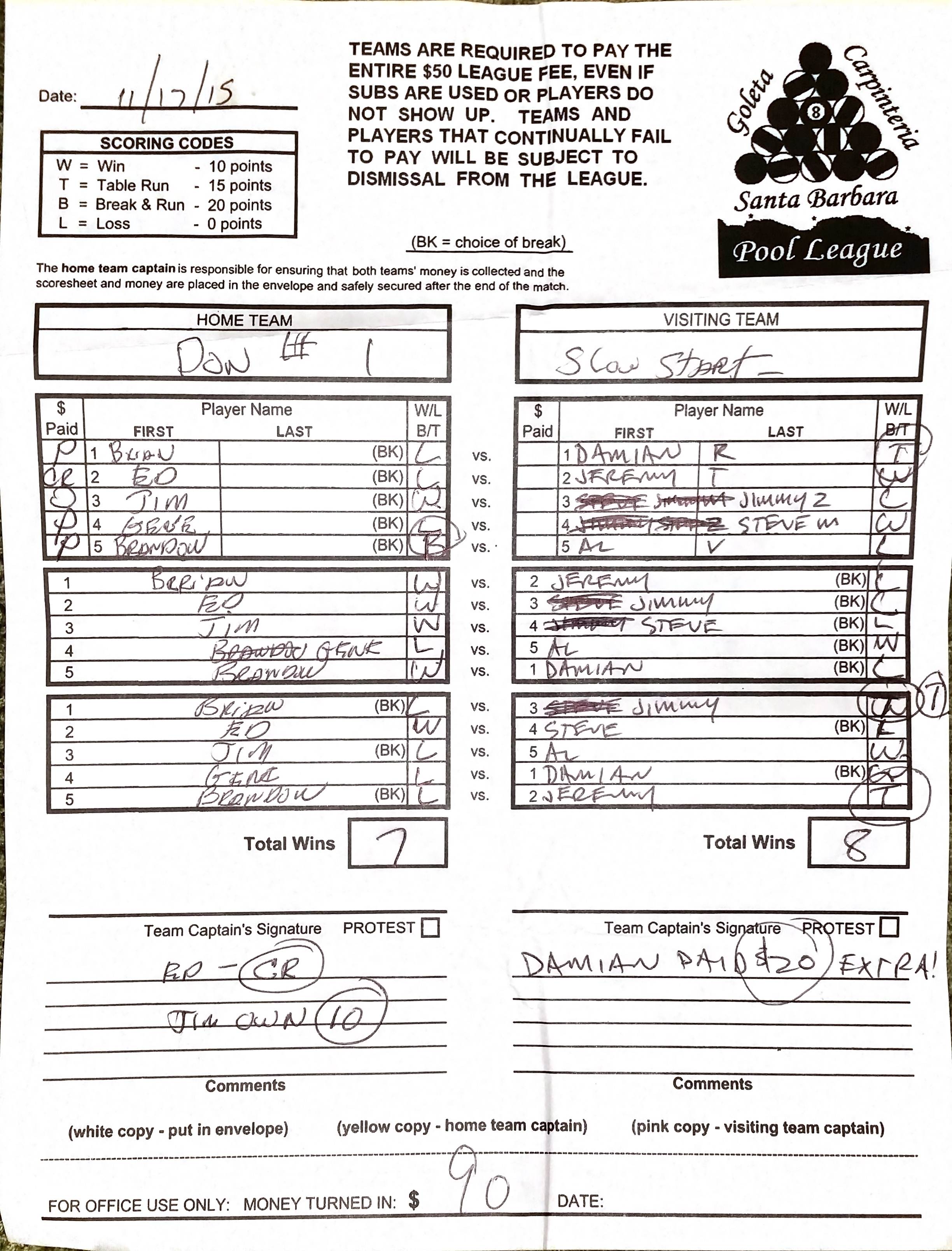 L | Brian Shillington | vs | Jim Zambelli | T |