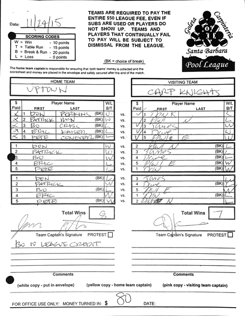 L | Pete Conover | vs | Don Risdon | W |