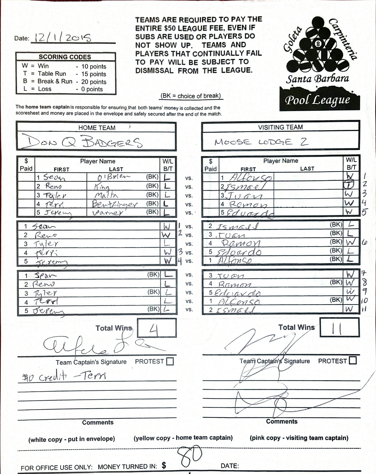 W | Terri Bentzinger | vs | Ed Guzman | L |