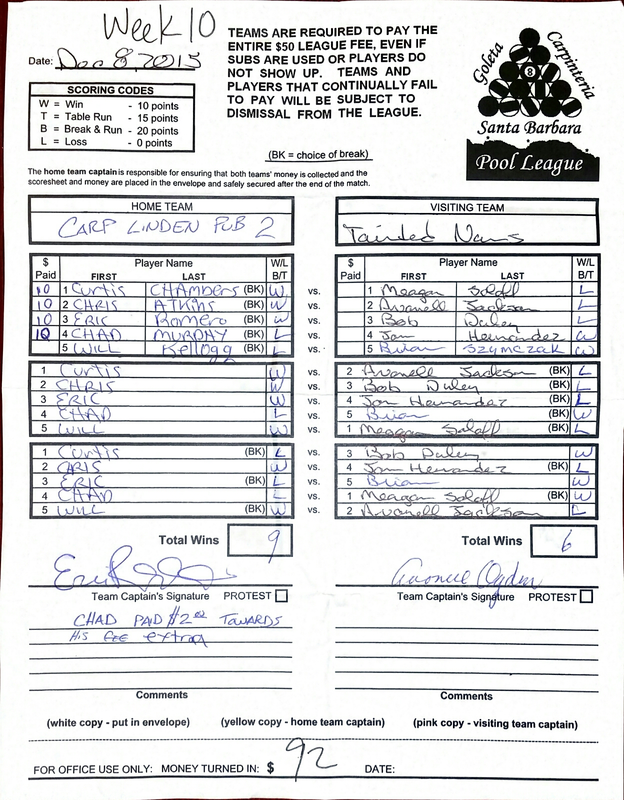 W | Curtis Chambers | vs | Meagan Soloff | L |