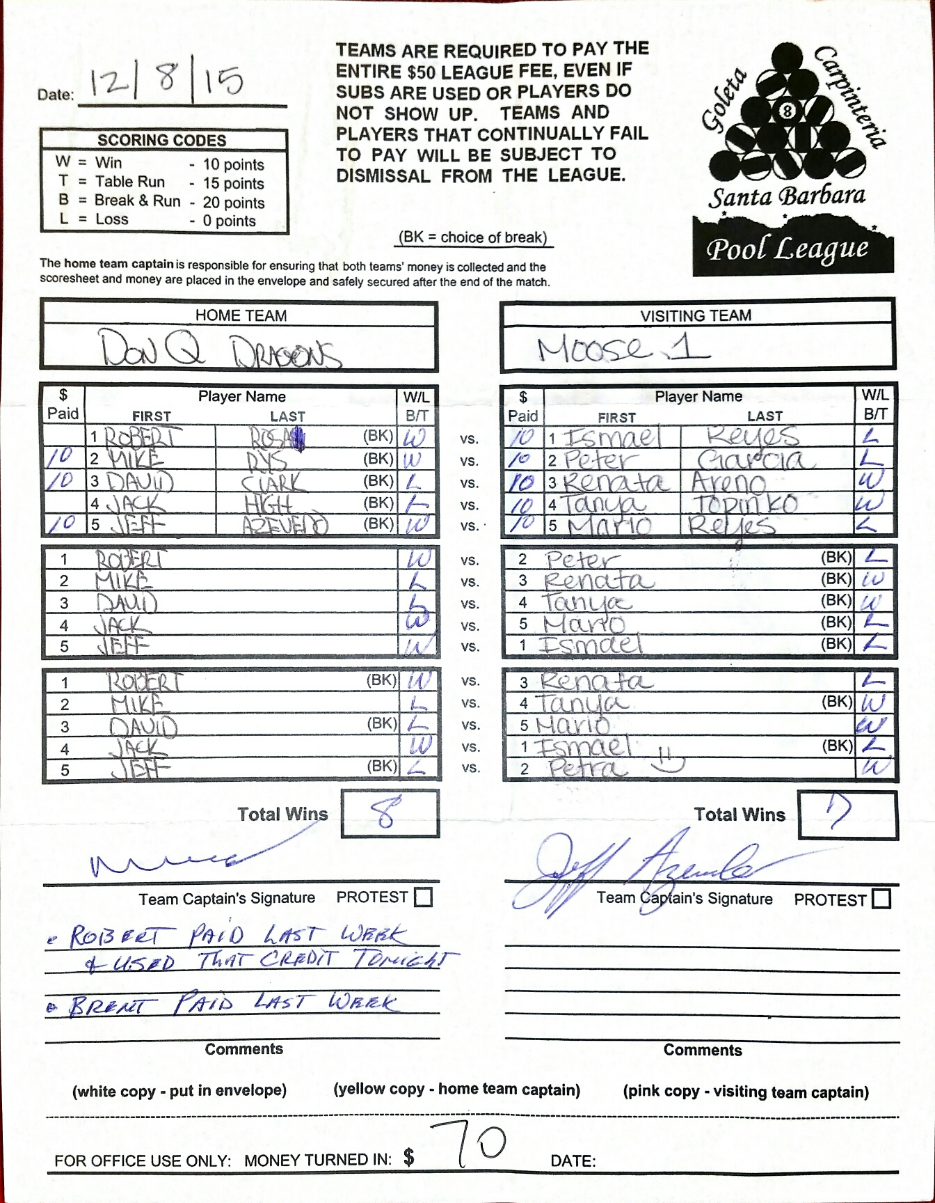 L | David Clark | vs | Mario Reyes | W |