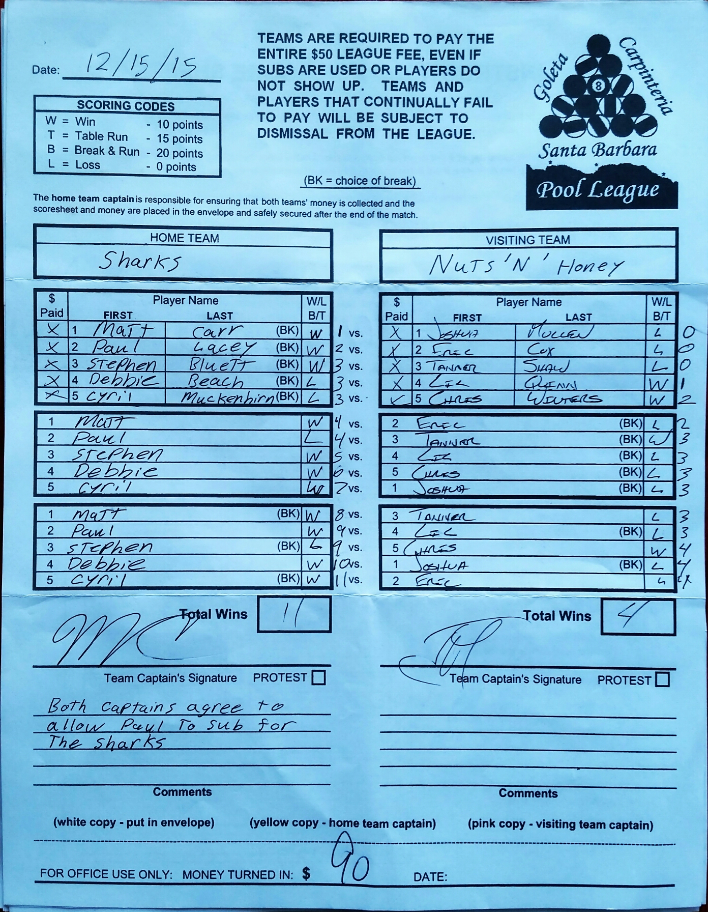 W | Stephen Bluett | vs | Liz Quinn | L |