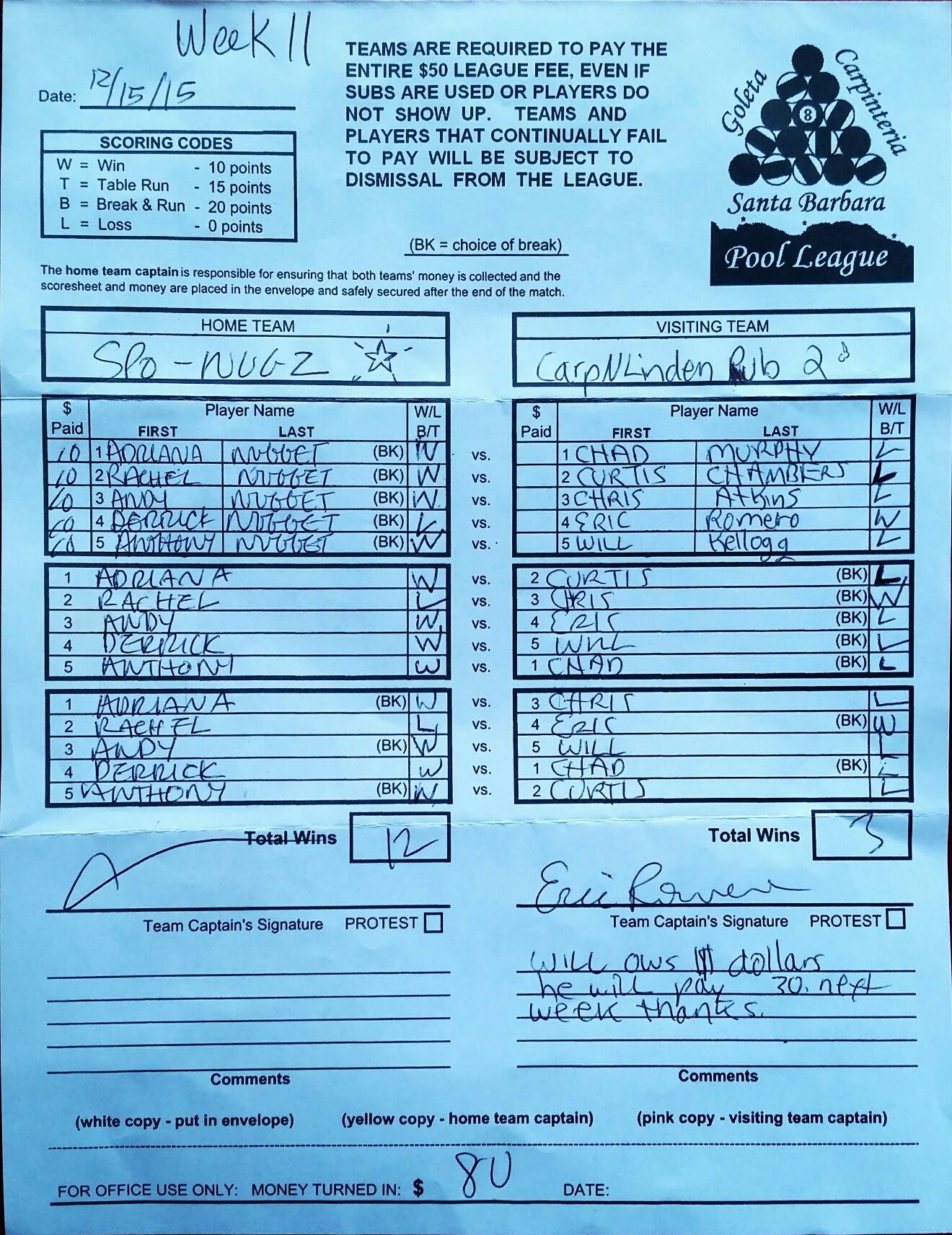 W | Adriana Balanda | vs | Curtis Chambers | L |