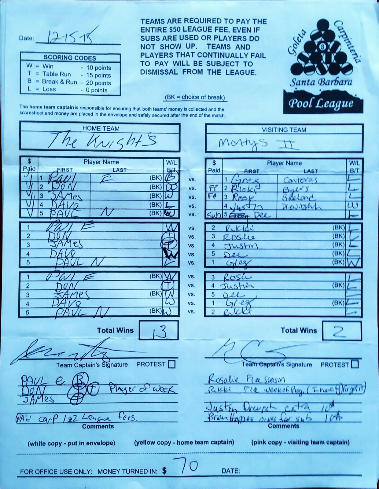 T | Don Risdon | vs | Rosalie Breeland | L |