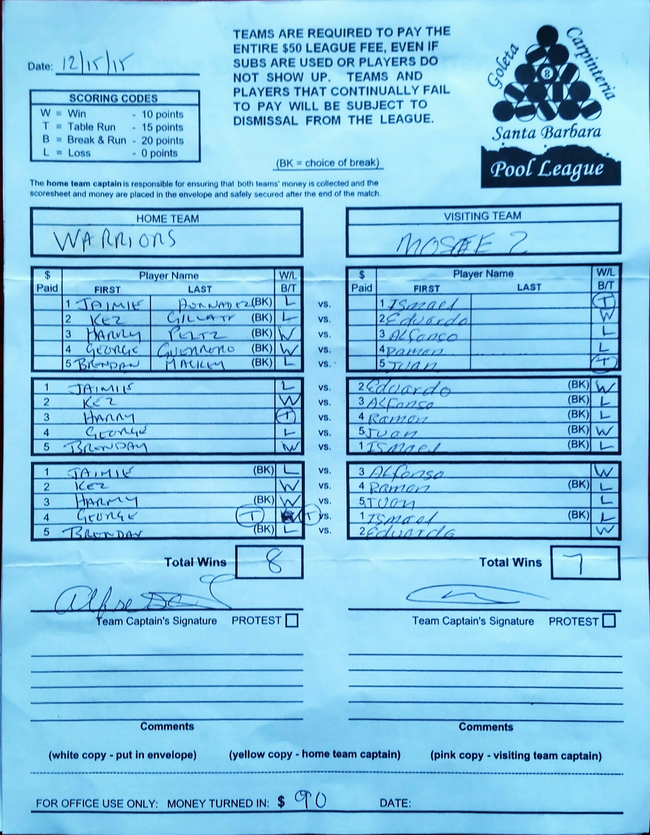 W | Brendan Mackey | vs | Ismael Huerta | L |
