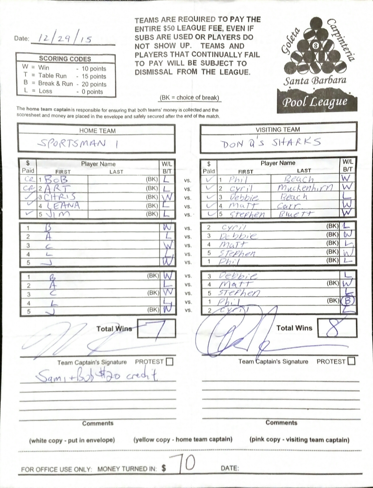 W | Bob McLean | vs | Debbie Beach | L |
