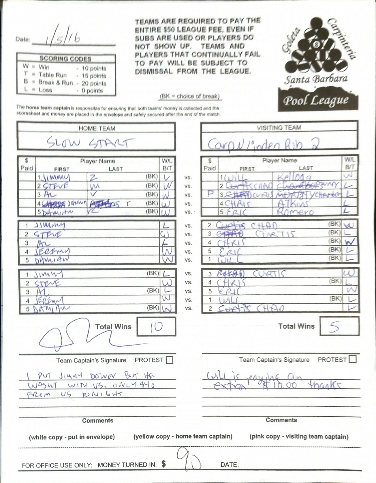 L | Jim Zambelli | vs | Chad Murphy | W |