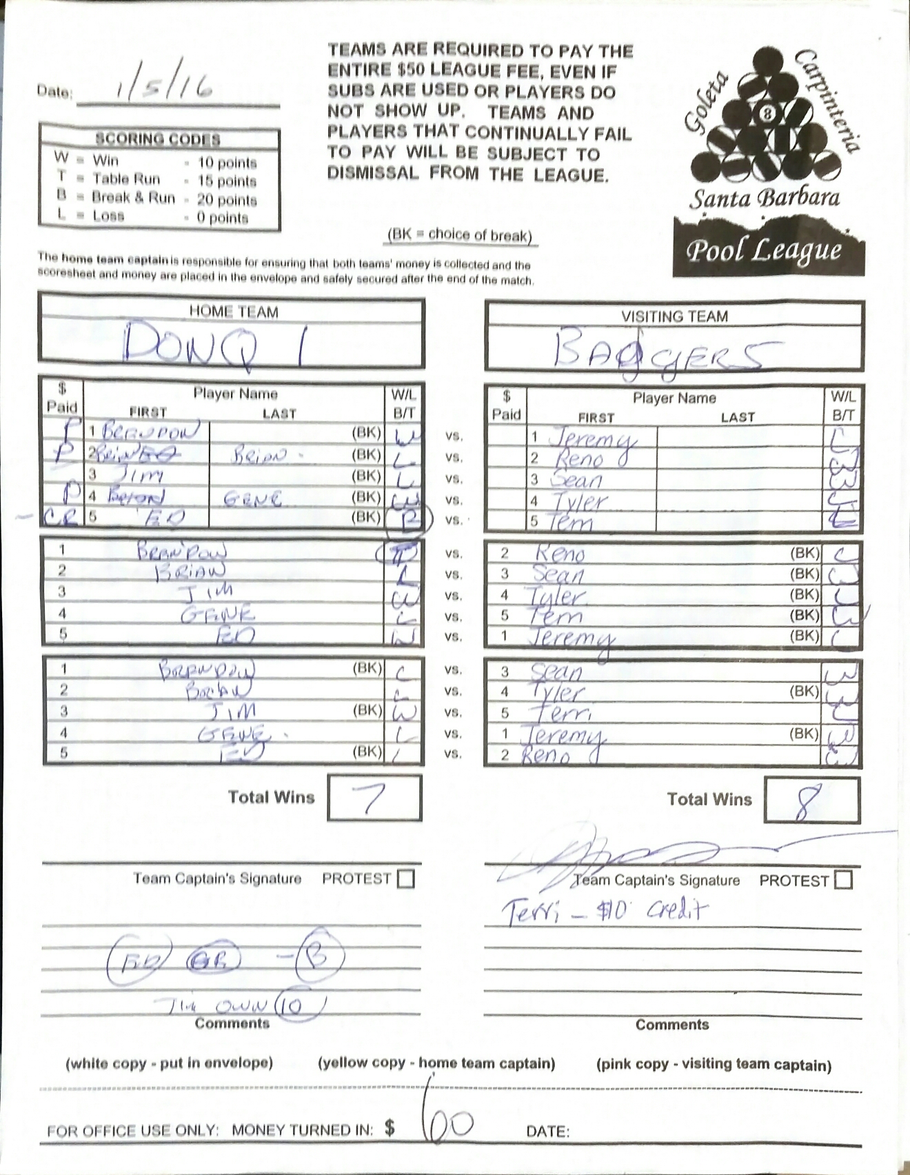 L | Gene Manriquez | vs | Terri Bentzinger | W |