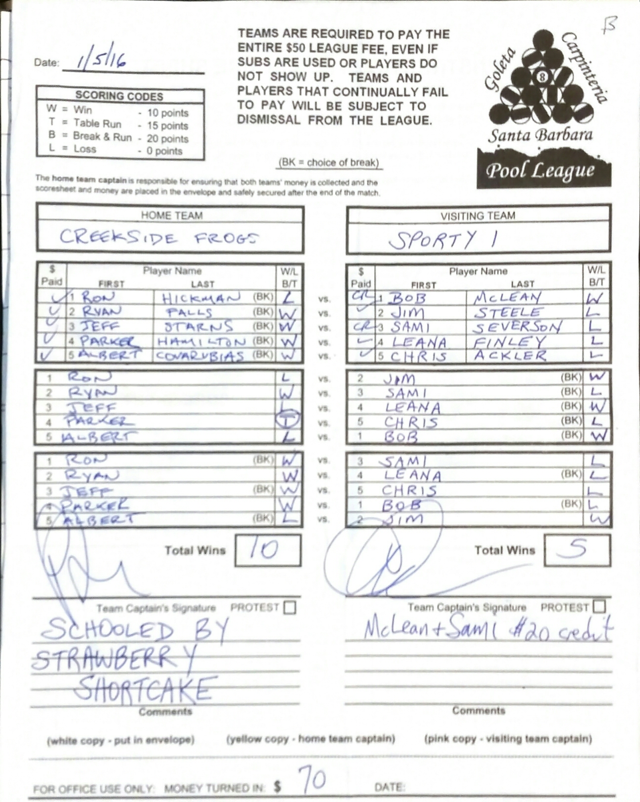 W | Ryan Falls | vs | Leana Finley | L |