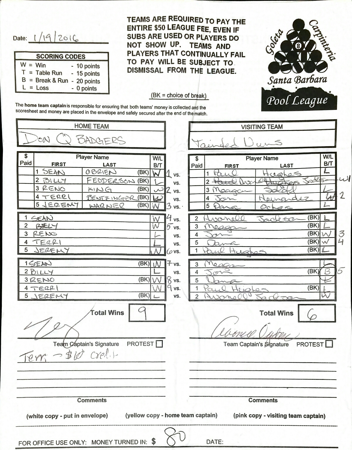 W | Sean O'Brien | vs | Meagan Soloff | L |