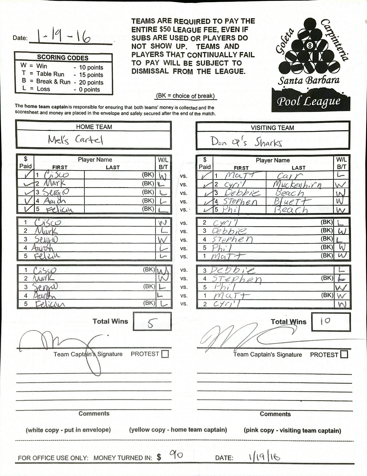 L | Mark Waldinger | vs | Debbie Beach | W |