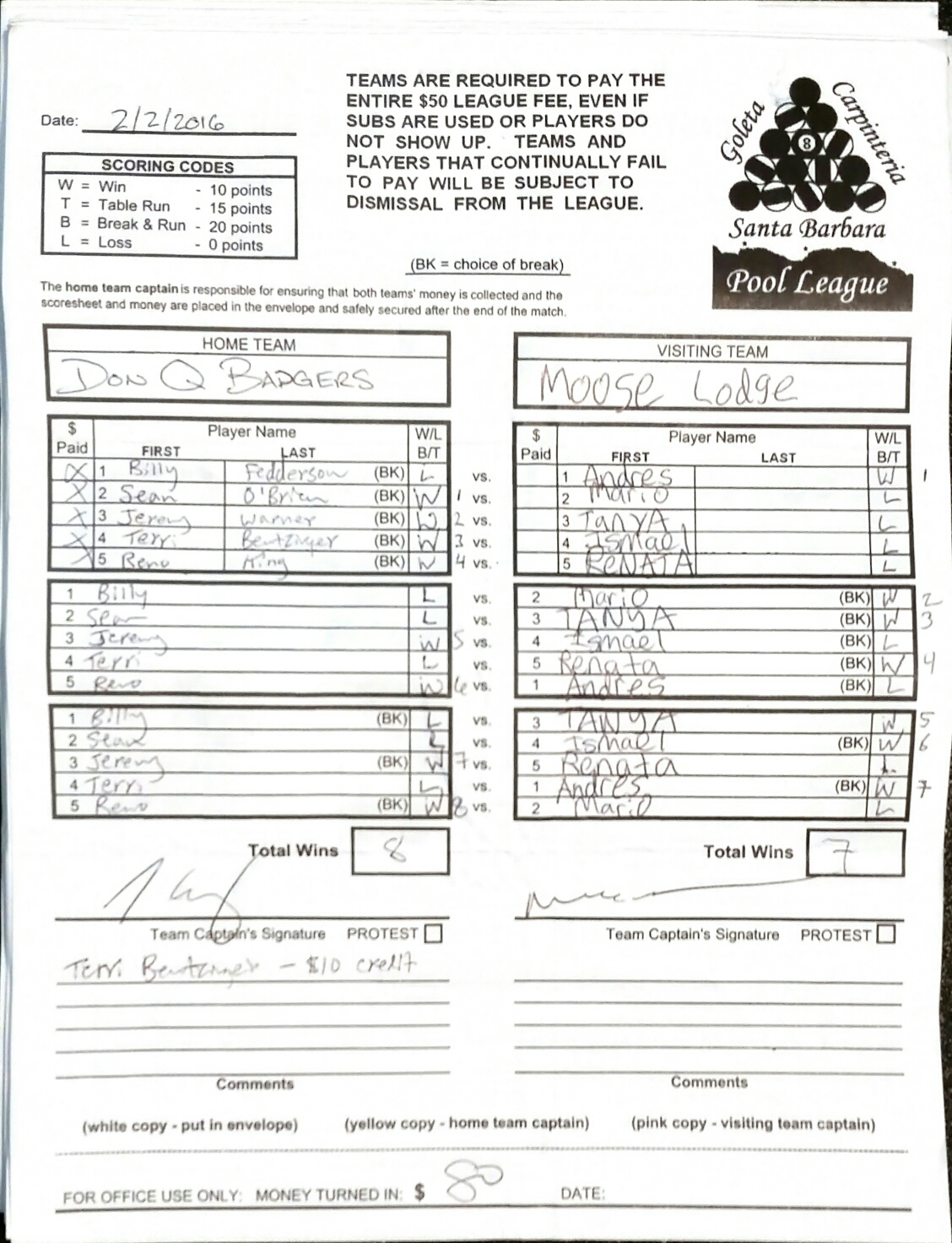 L | Terri Bentzinger | vs | Andres Cortez | W |