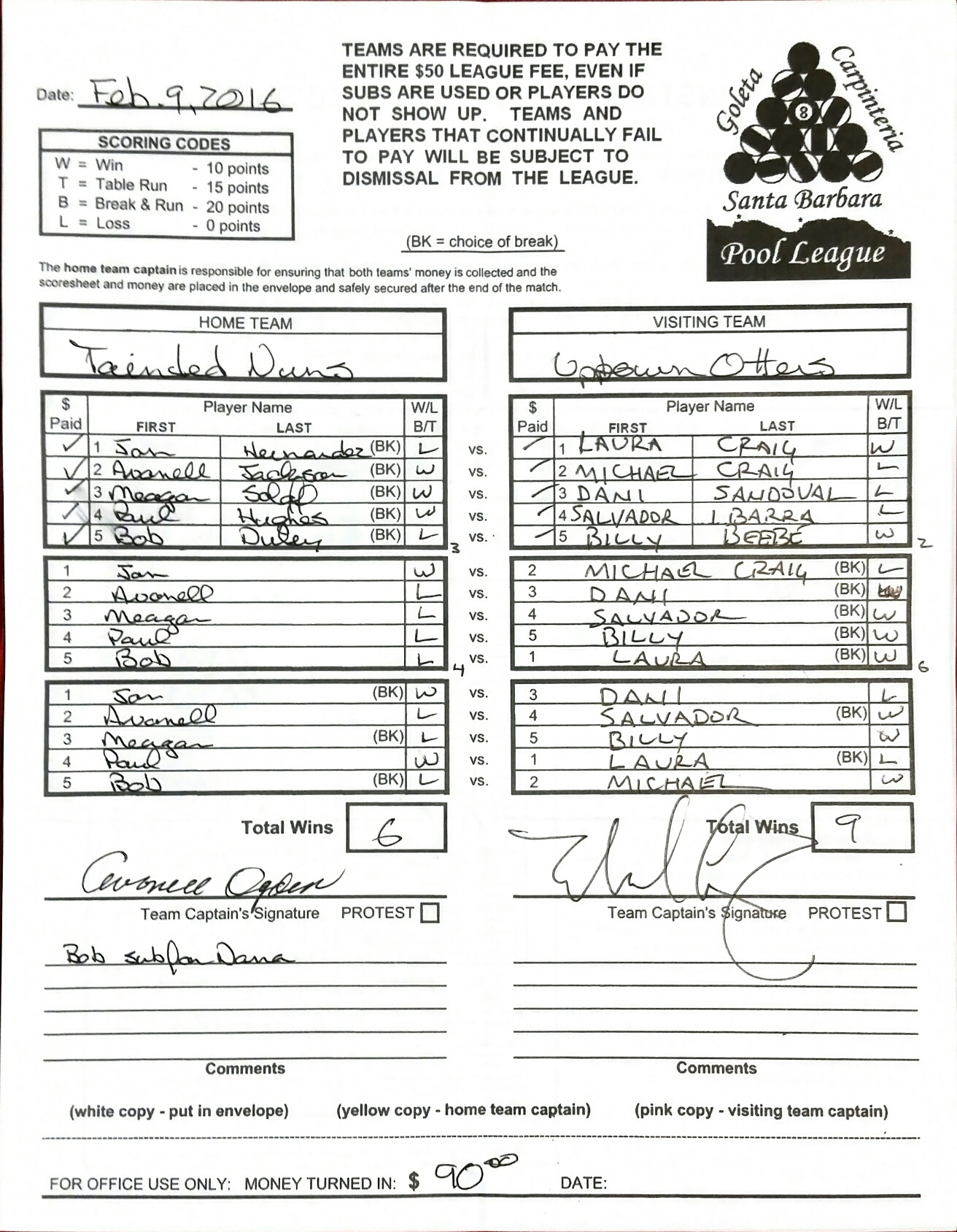 L | Bob Duley | vs | Laura Craig | W |