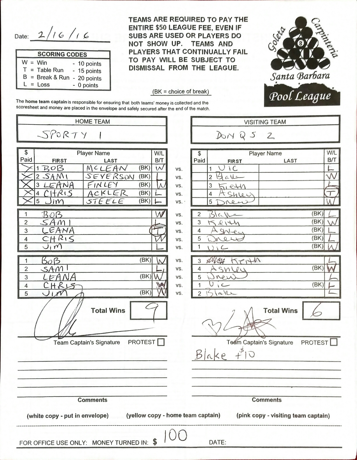 L | Chris Ackler | vs | Ashley Robinson | T |