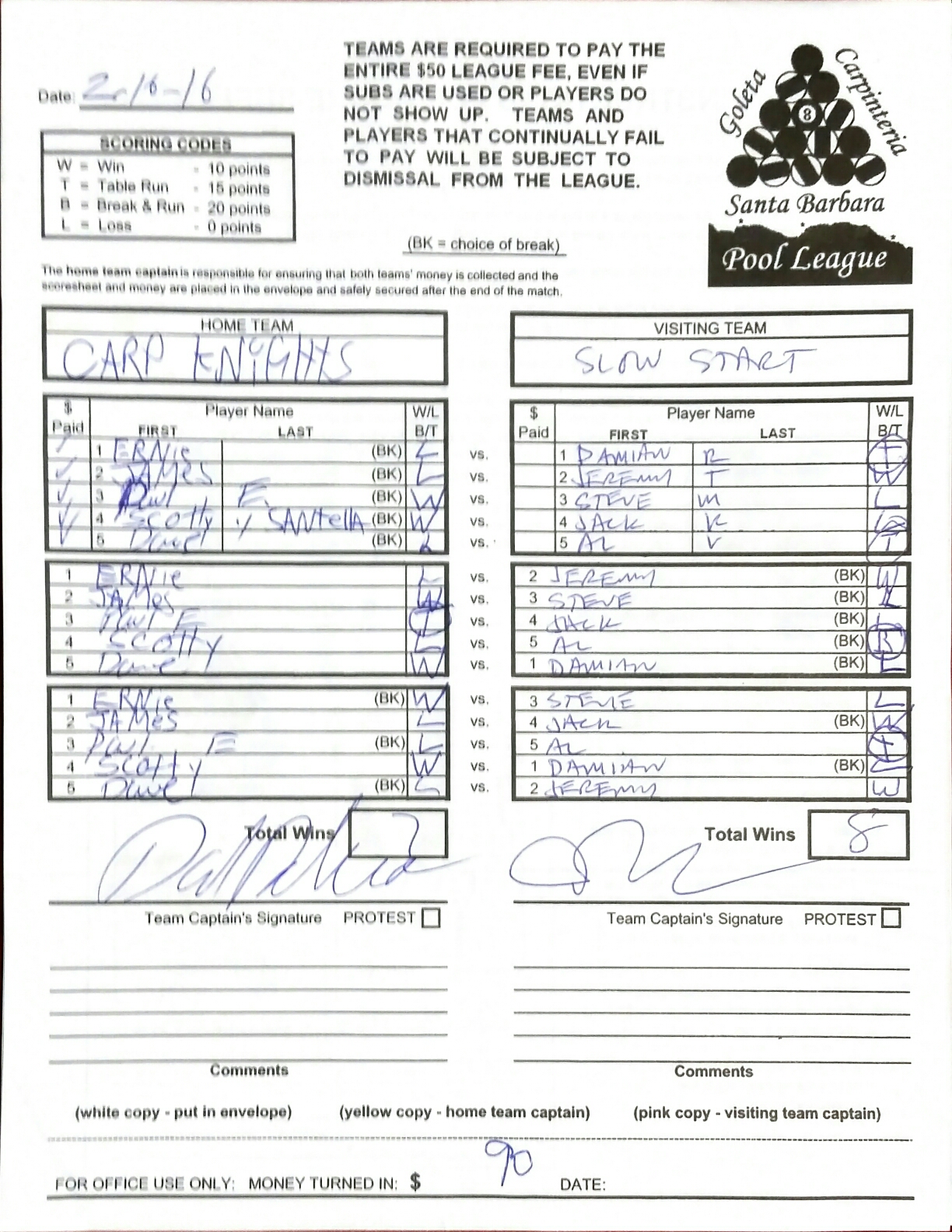 W | Scott Santella | vs | Damian Rebman | L |