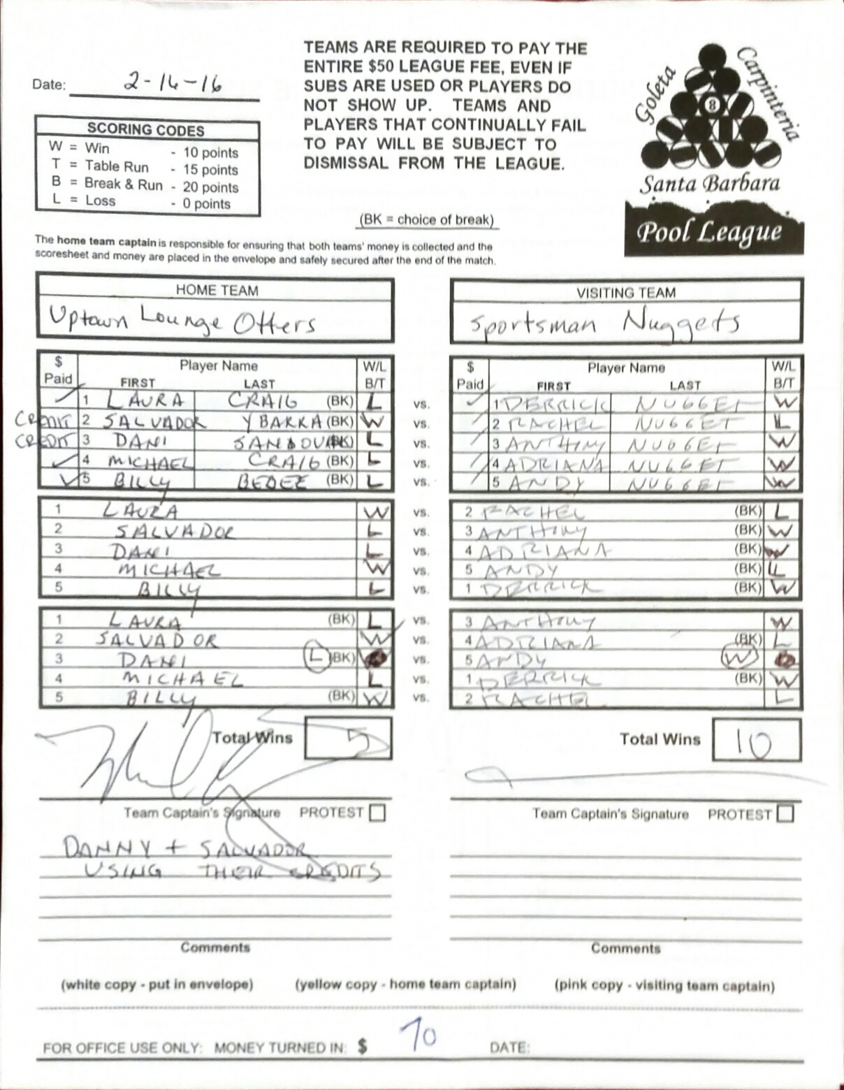 W | Billy Beebe | vs | Rachel Johnson | L |