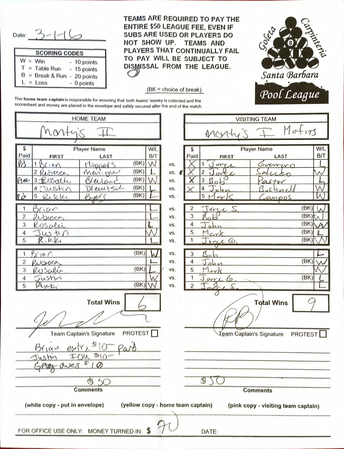 L | Rosalie Breeland | vs | John Bushnell | W |