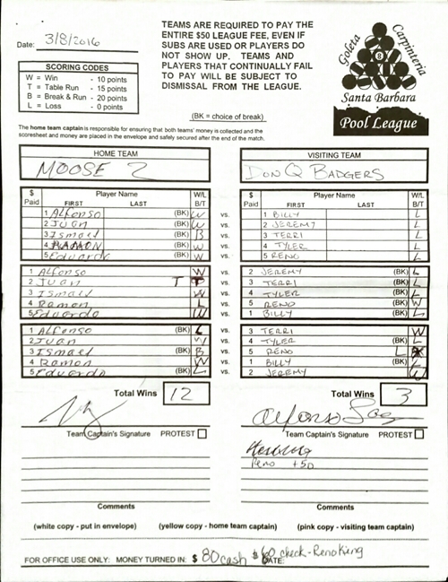 T | Juan Manzo | vs | Terri Bentzinger | L |