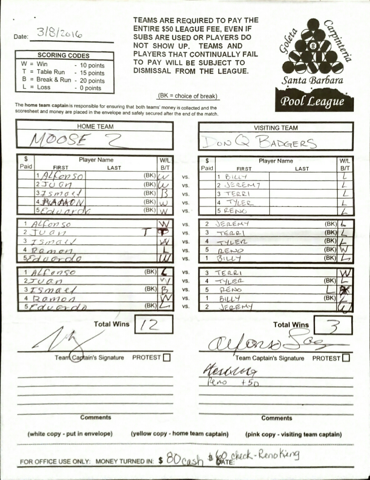 W | Ed Guzman | vs | Reno King | L |