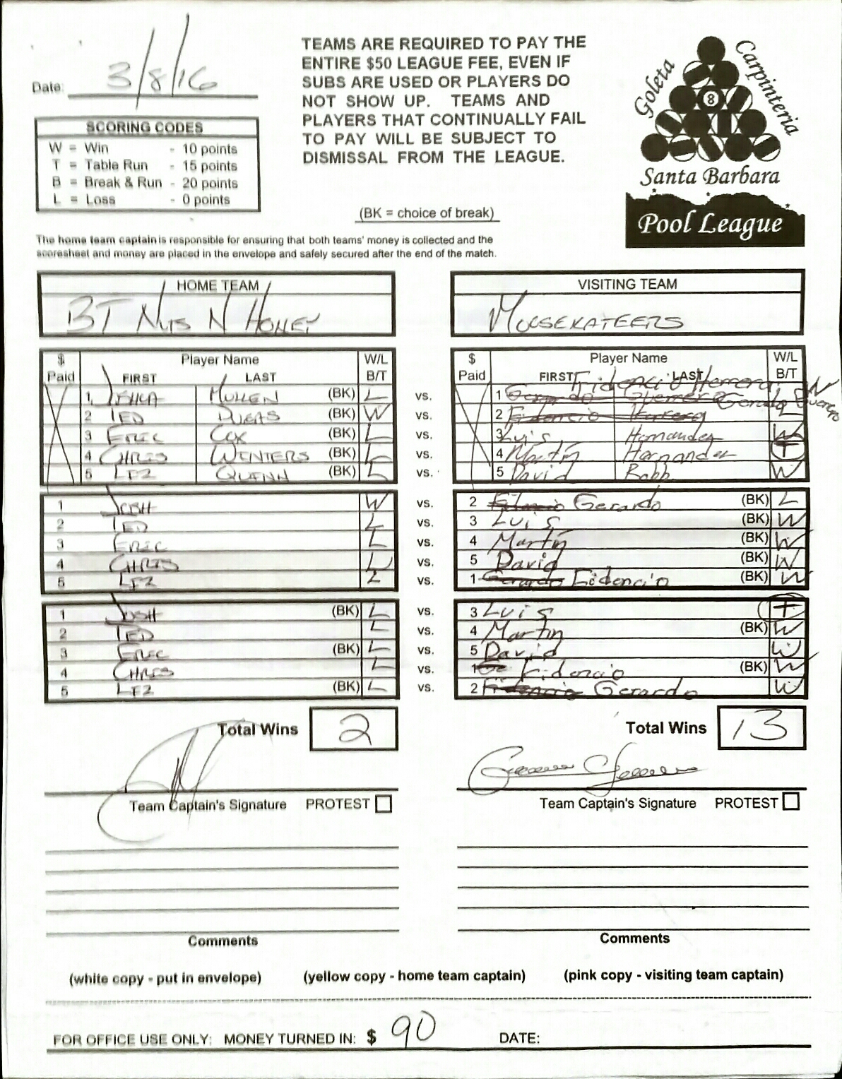 L | Ted Dugas | vs | Luis Hernandez | W |