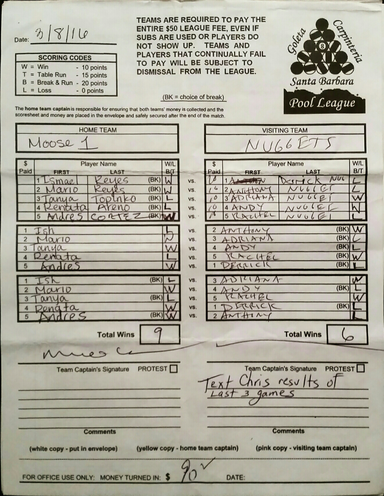 W | Tanya Topinko | vs | Andy Reagan | L |