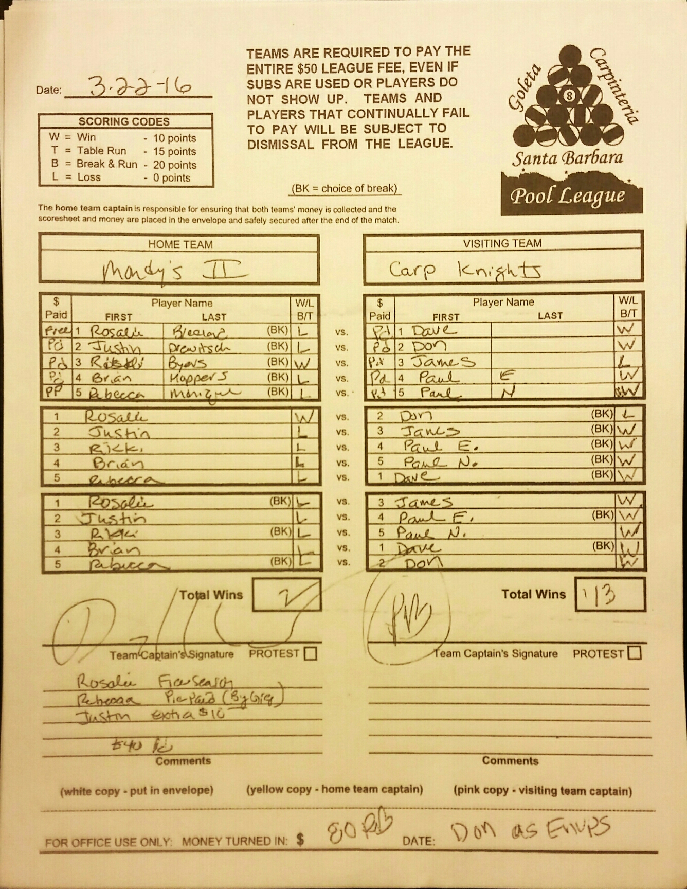 W | Rosalie Breeland | vs | Don Risdon | L |