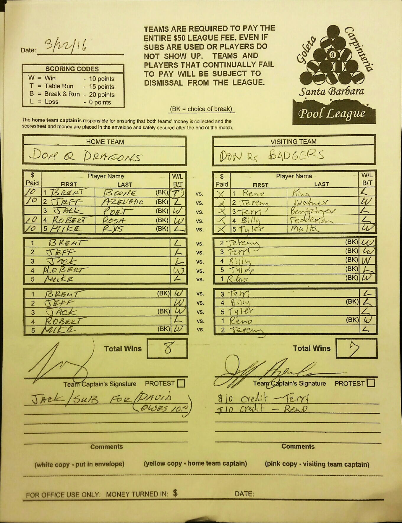W | Jack Poet | vs | Terri Bentzinger | L |