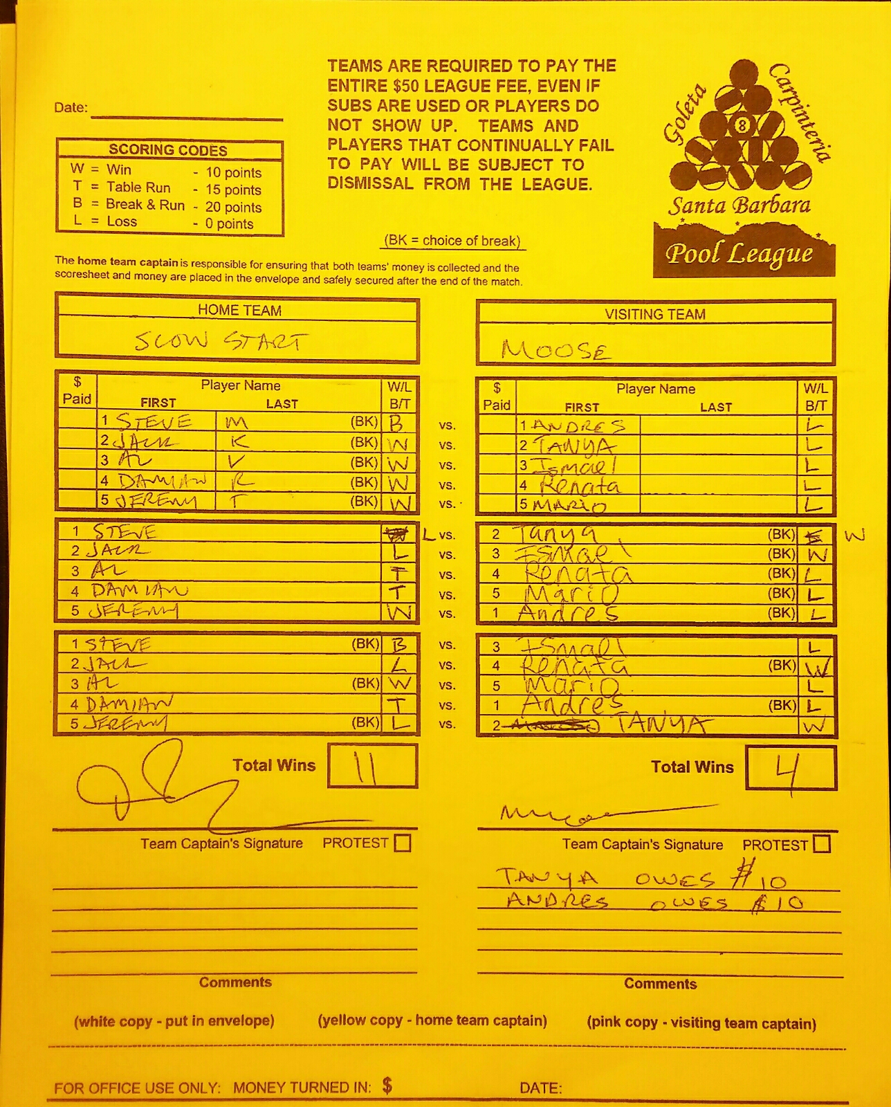 L | Steve Moreno | vs | Tanya Topinko | W |