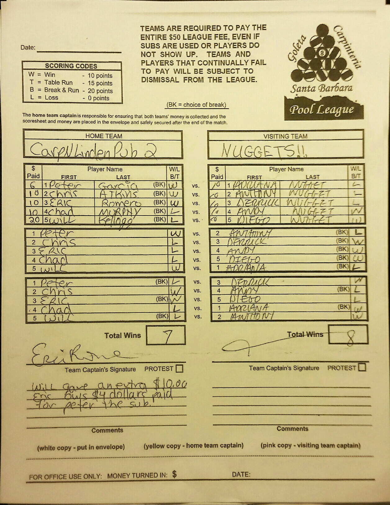 W | Will Kellogg | vs | Adriana Balanda | L |