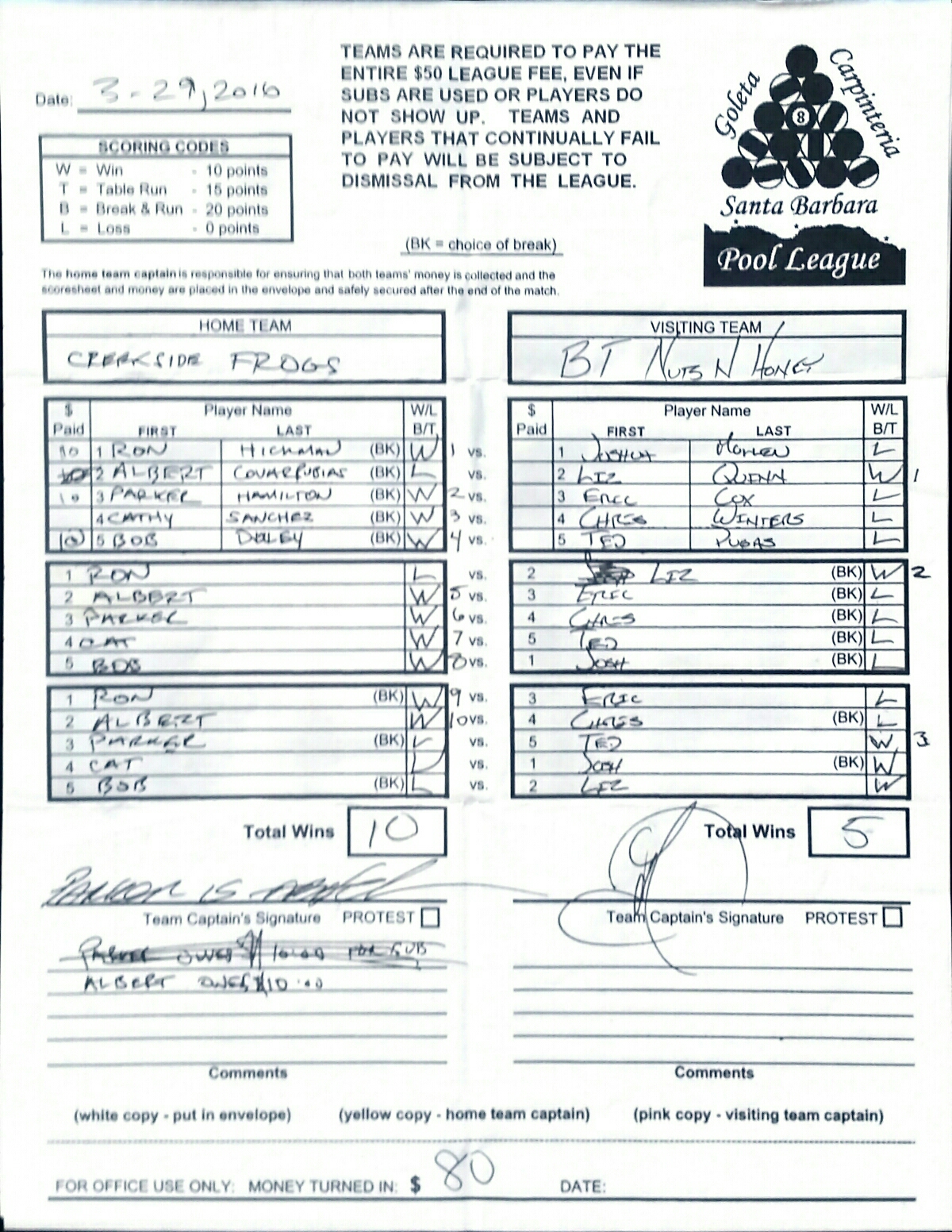 W | Cathy Sanchez | vs | Chris Winters | L |