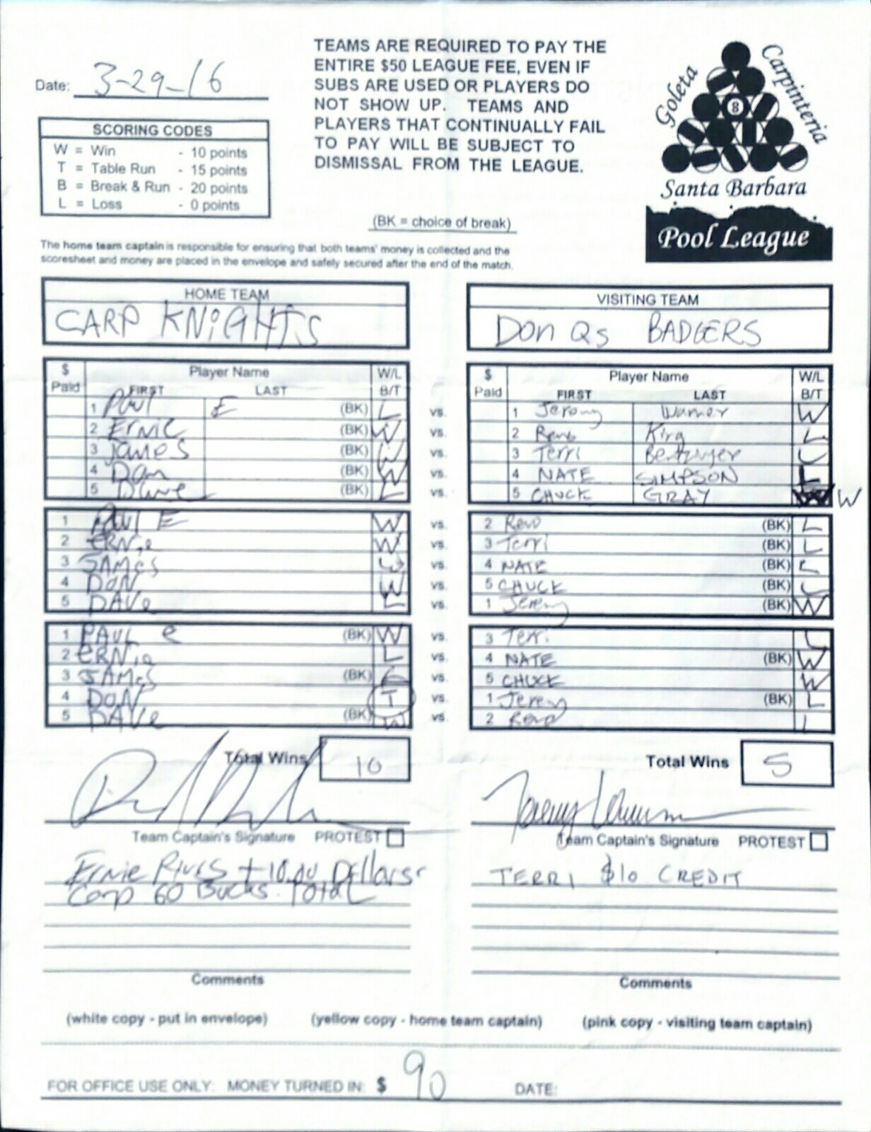 W | Ernie Rivas | vs | Terri Bentzinger | L |