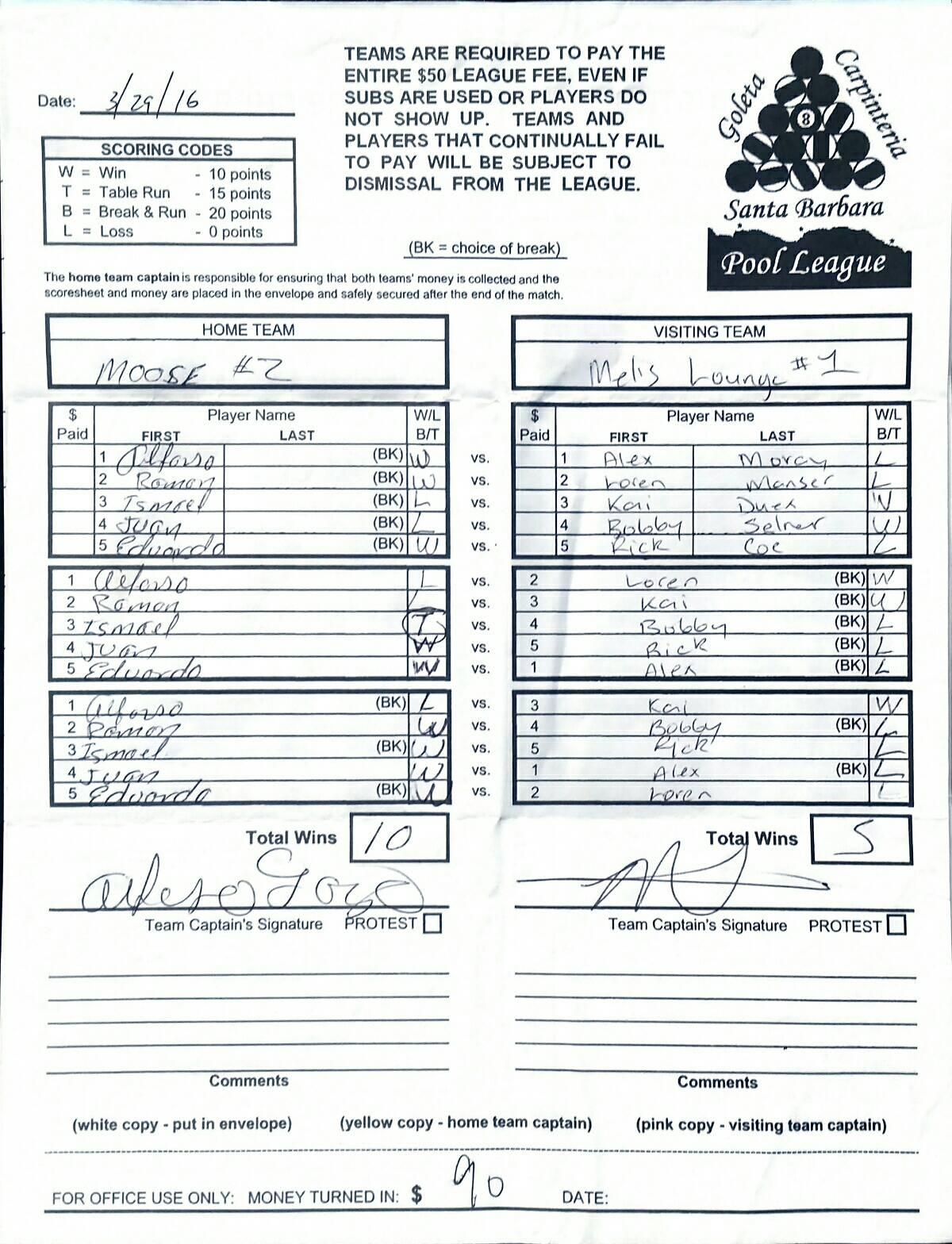 L | Alfonso Lazaro | vs | Loren Manser | W |