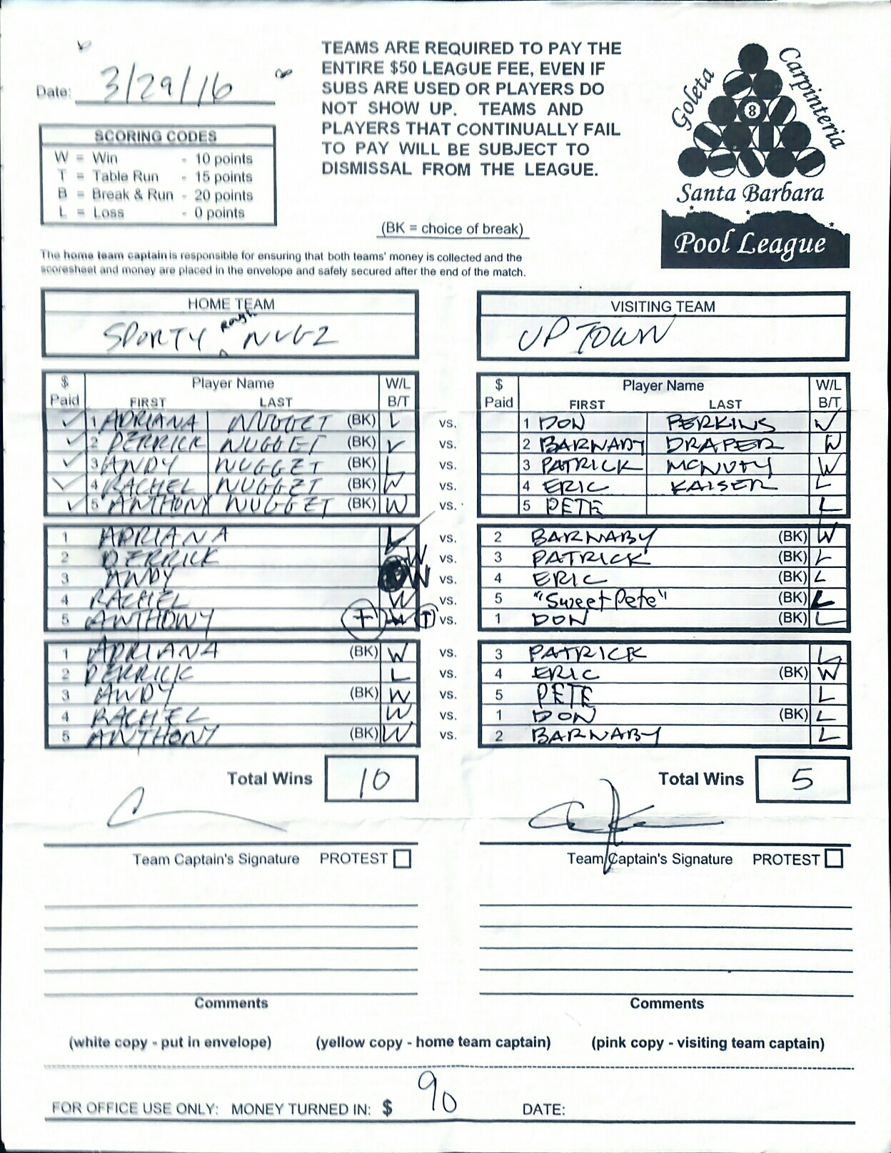 W | Adriana Balanda | vs | Patrick McNulty | L |